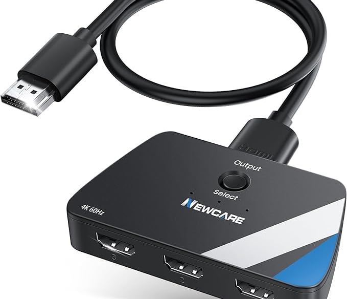 Upgrade your setup with this 3-Port 4K HDMI Switch, designed to connect up to three devices to one display. It supports 4K video, 3D, and 1080P HD, delivering clear and smooth visuals. The built-in HDMI cable ensures easy plug-and-play installation, while compatibility with PS5, Xbox, Fire Stick, DVD players, and PCs makes it perfect for home entertainment and gaming.